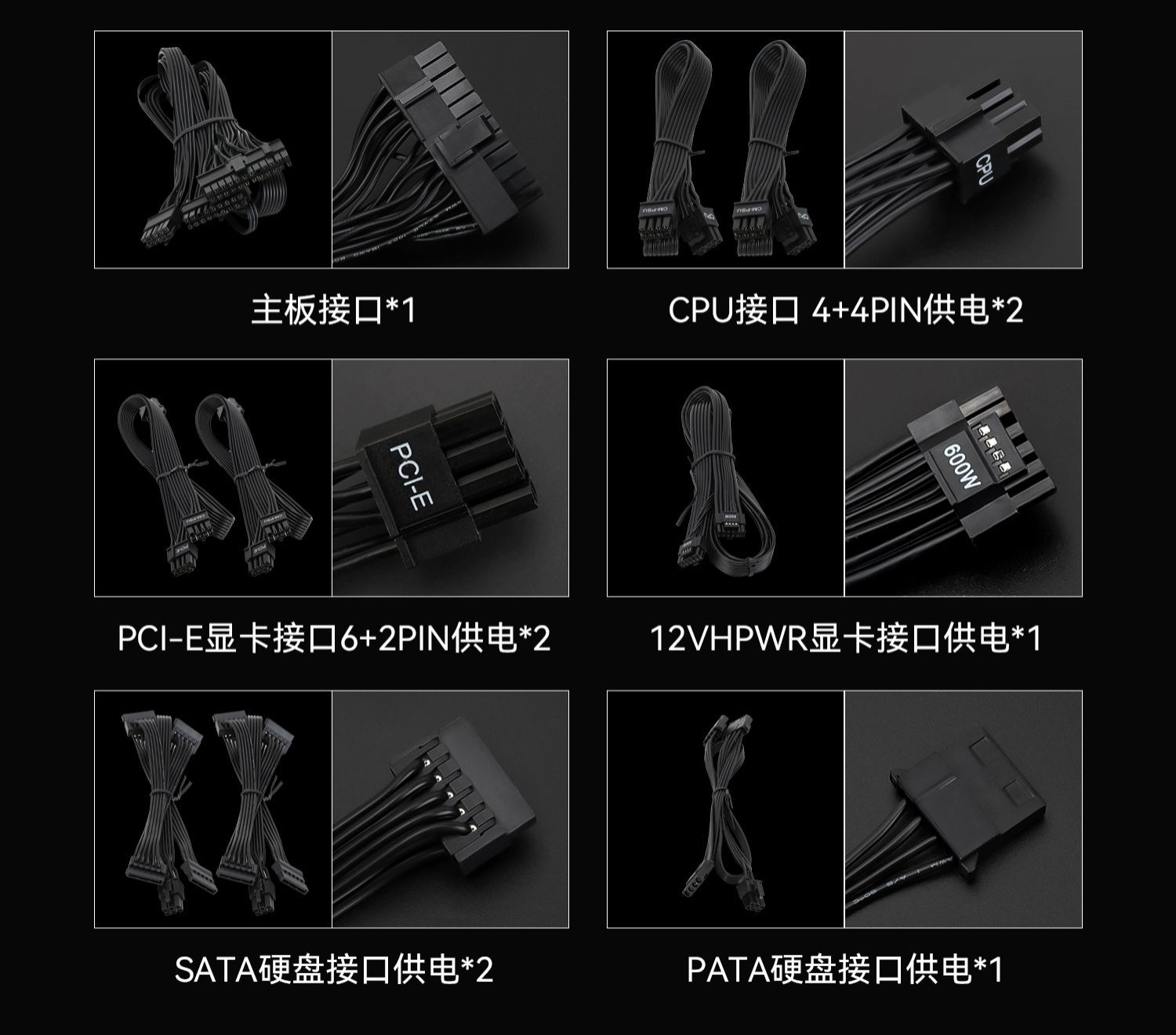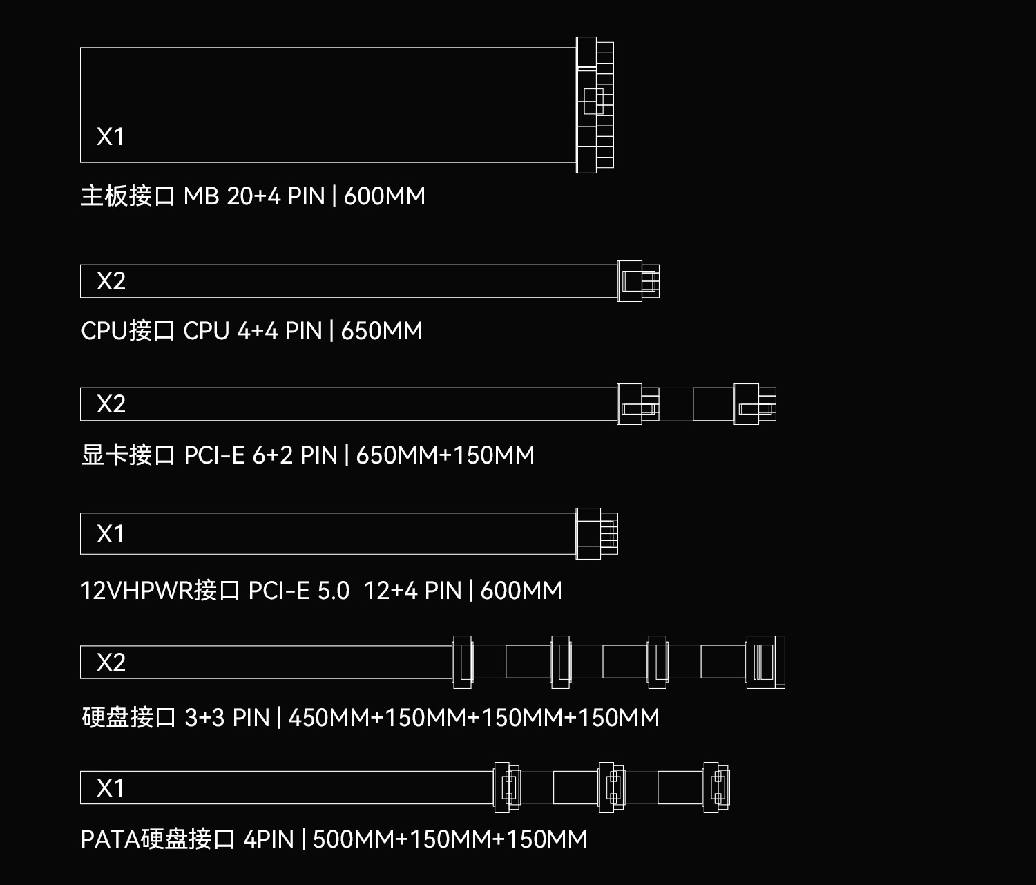 1 dây 24pin 600mm, 2 dây x 4+4 pin CPU 650mm